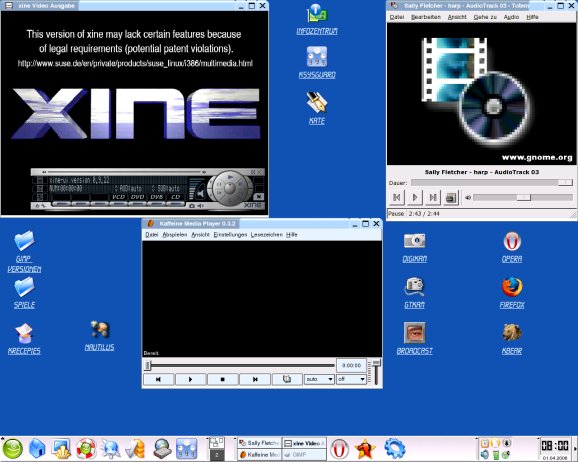 So haben KDE und Gnome jeweils eigene libraries. So kann man als ersten Eindruck KDE und Gnome Anwendungen am Aussehen ihrer Dialogelemente unterscheiden. Wenn man zum Beispiel in kprinter, einem KDE Dialog fur Druckereinstellungen eine Einstellung ändert, zum Beispiel im Browser und Dateimanager konqueror, so wirkt sie sich auf andere Programme aus, zum Beispiel kate und kaffeine. Eine neue Einstellung ändert sich gemeinsam bei KDE Anwendungen, auf Grund einer Einstellung innerhalb eines KDE Anwendung: zum Beispiel Kate Öffnen-Dialog: Navigationsleiste anzeigen, automatisch auch bei kaffeine. über ihre gemeinsame Basis XServer nutzen sie auch gemeinsam libraries von X-Server. © 2005 Jutta Tedsen